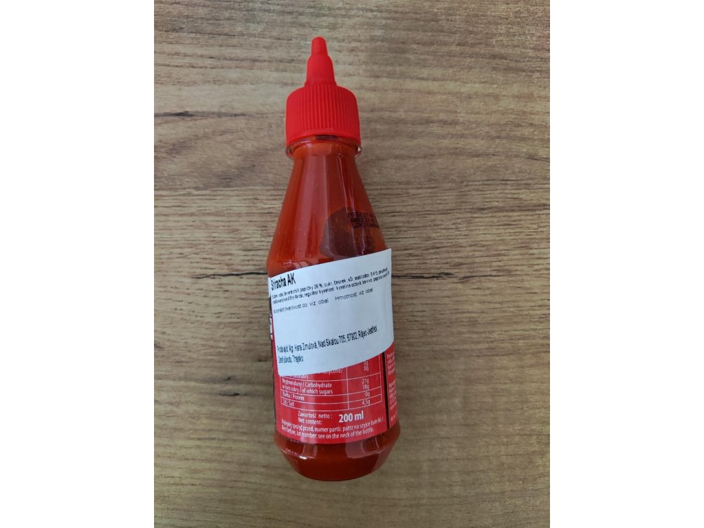 Složení: voda, červené chilli papričky 28 %, cukr, česnek, sůl, stabilizátor: E415, zahušťovadlo: modifikovaný kukuřičný škrob, regulátor kyselosti: kyselina octová, barvivo: paprikový extrakt E160c.
