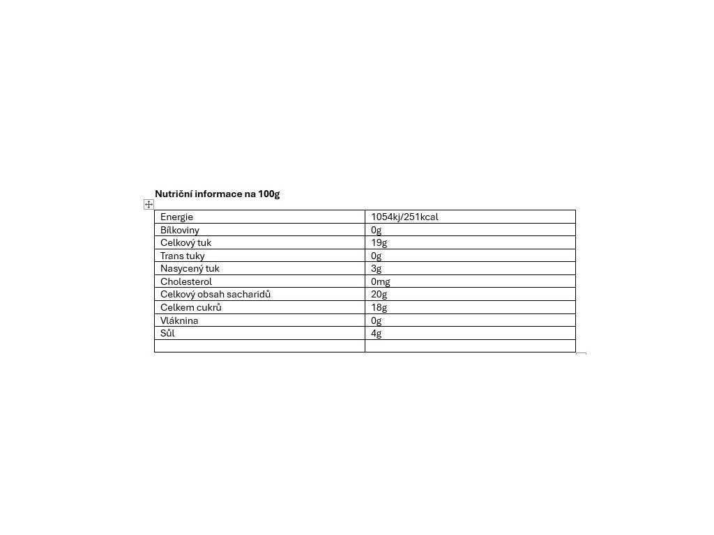 Voda, Cukr, sója, Červené chilli, Ocet, Česnek, Sůl, Hořčičné semínko, Modifikovaný škrob (E1422), Kyselina citronová (E330), Xanthanová guma (E415),