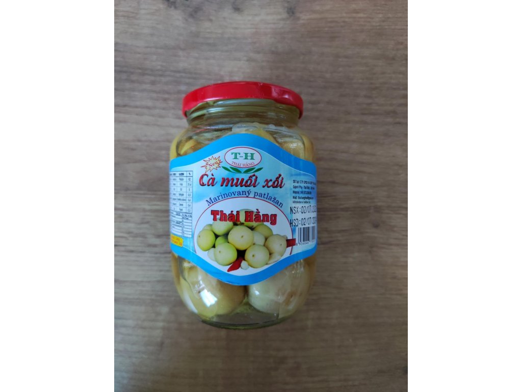 Složení: lilky baklažán, voda, sůl, cukr, galangal, ocet, konzervační látka E202, E211, látka zvýrazňující chuť E621, E950, E951, antioxidanty E223