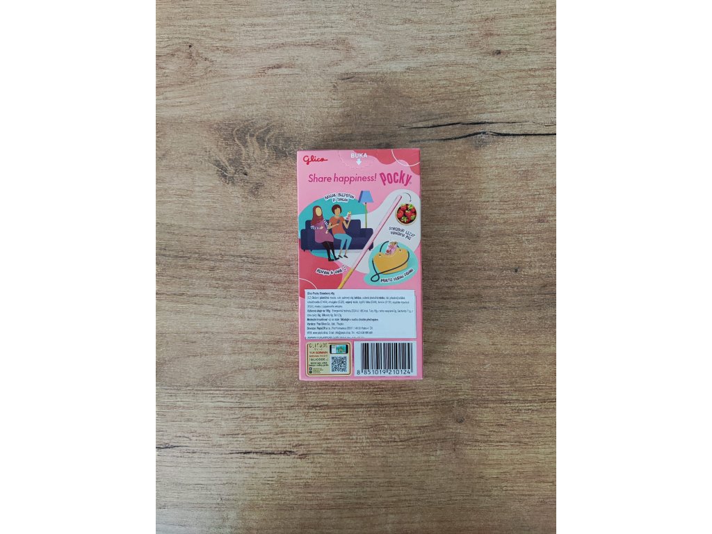 Složení: pšeničná mouka 42%, cukr 21%, palmový olej 17%, laktóza 9%, mléko v prášku 8%, tuk do pečiva 2%, jahodový prášek 0,1%, zahušťovadla (INS 1404), emulgátor (INS 322(i)), INS 500 (ii), regulátor kyselosti (INS 524), barviva (INS 120), dochucovadlo (INS 1101 (ii)).