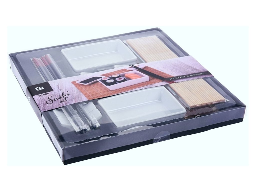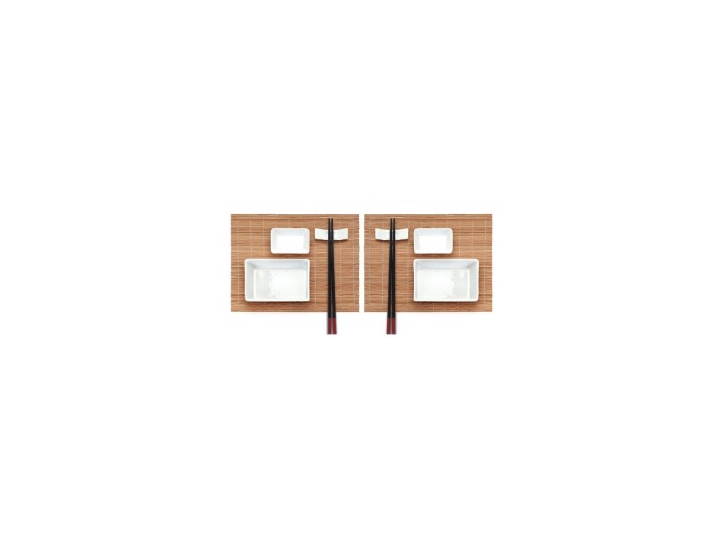 - keramické servírovací misky a držáky, bambusové hůlky a prostírání
