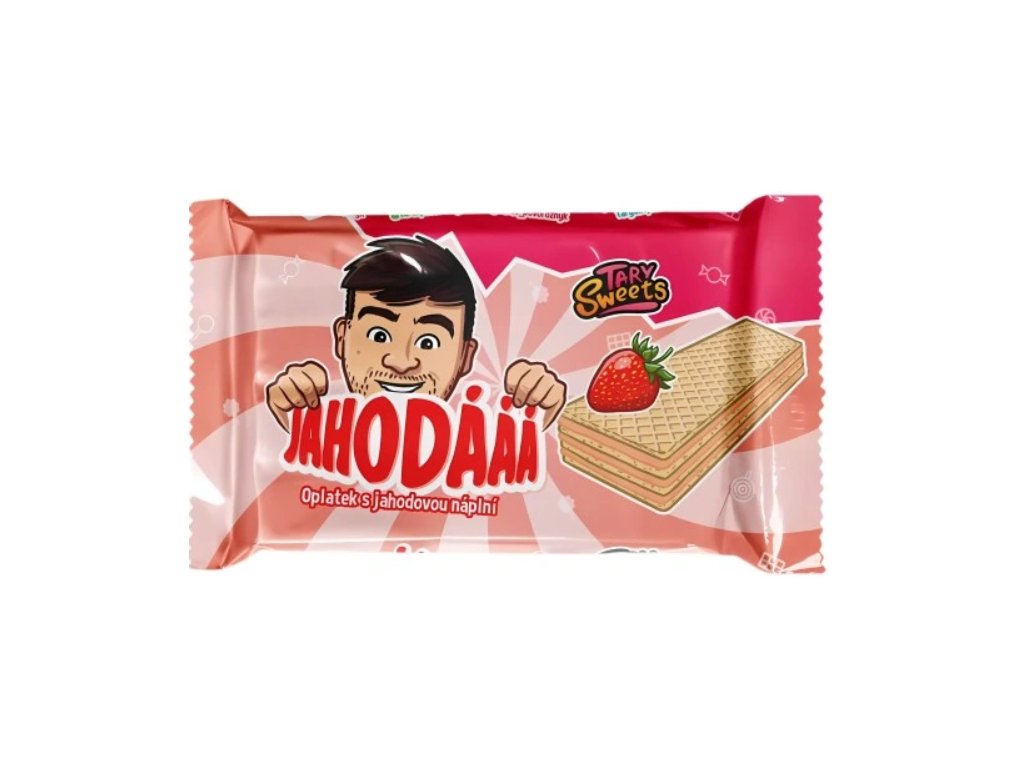 Složení : Pšeničná mouka, rostlinné oleje (palmový, kokosový), cukr, glukózový sirup (kukuřičný), kukuřičný škrob, sušené odstředěné mléko, sůl, kypřící látky (kyselina sodná, pyrofosfát, hydrogenuhličitan sodný, hydrogenuhličitan amonný), emulgátor (sójový lecitin), aroma (vanilka, jahoda), barvivo (červená řepa).
