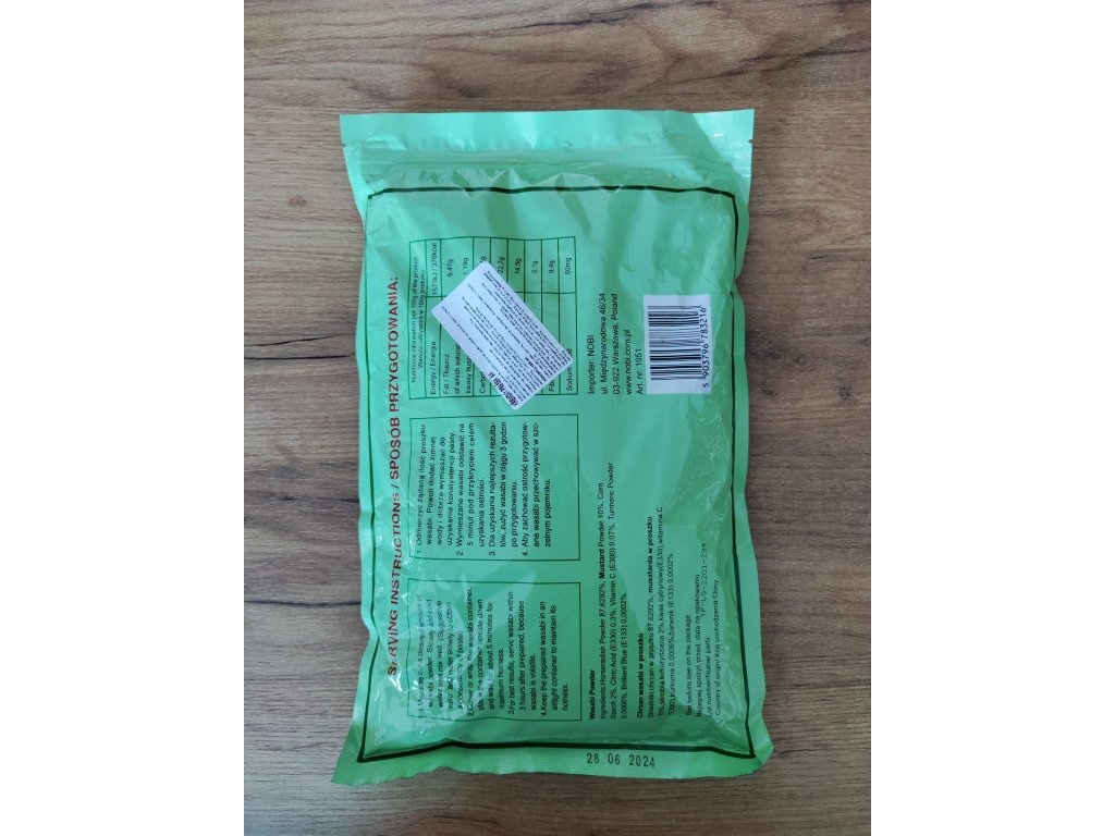 Složení: křen 88%, hořčice 10%, kukuřičný škrob 2%, regulátor kyselosti: kys.citronová, vitamin C 0,07%DDD,